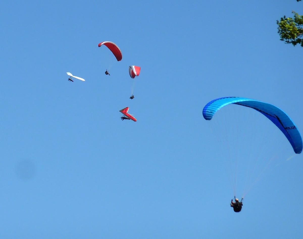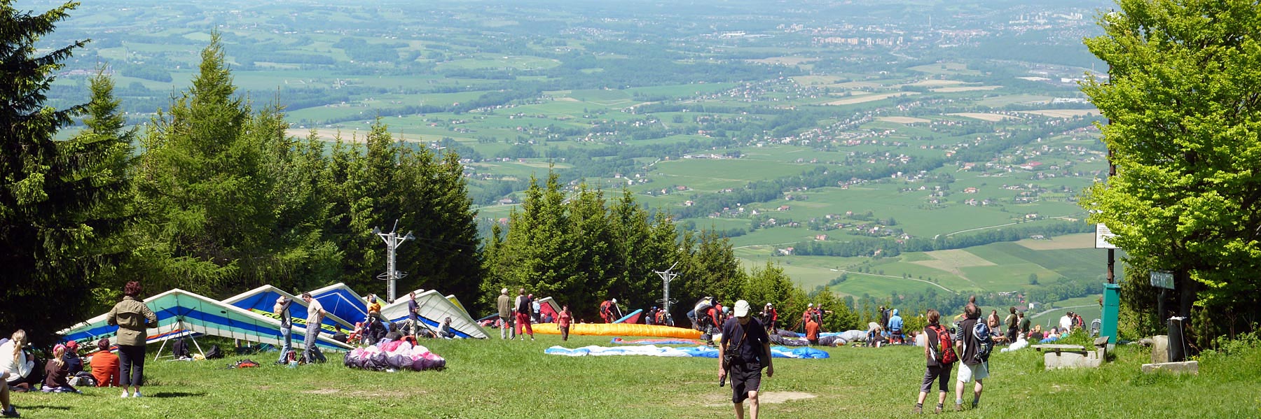 Nad Javorovým je docela “nabito”, ale všichni bez problémů startují a většinou se jim daří nastoupat a zmizet směrem na trať. Po přistání na určeném místě pak závodníci mění rogalo za bicykl a na něm přijíždějí do cíle.