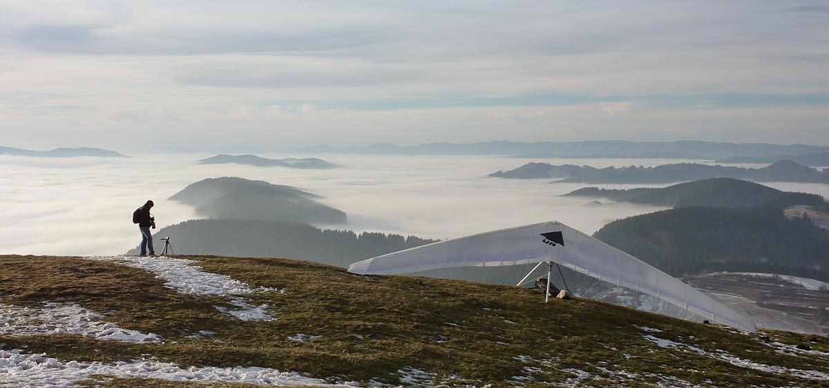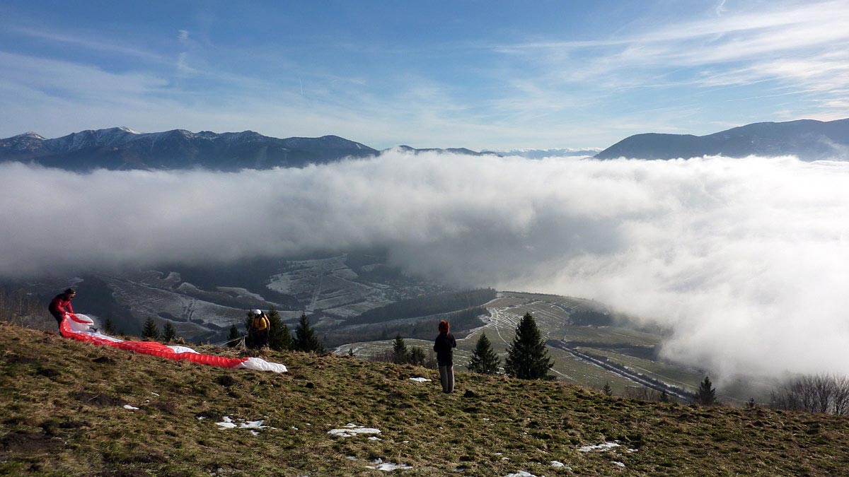 Nás ostatní přece jen odrazuje poměrně velká pravděpodobnost, že jen krátce slétneme do sedla. Křídla ani nestavíme a ti nejrozumnější je dokonce nechávají pod kopcem na autě.