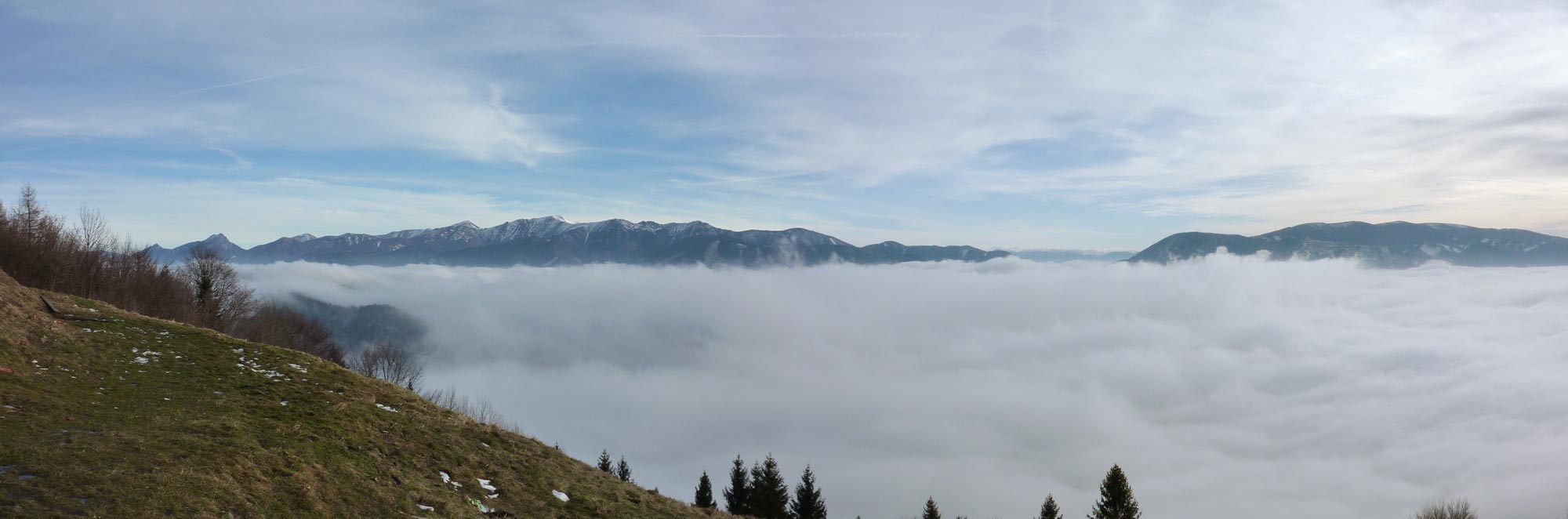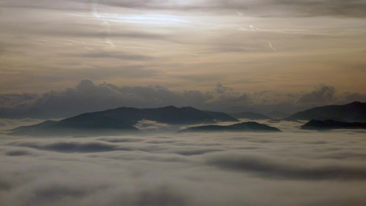 Nahoře je opravdu nádherně. Mlha v údolí tvoří neustále se měnící scenérie,