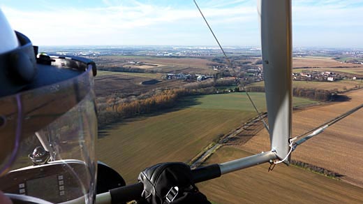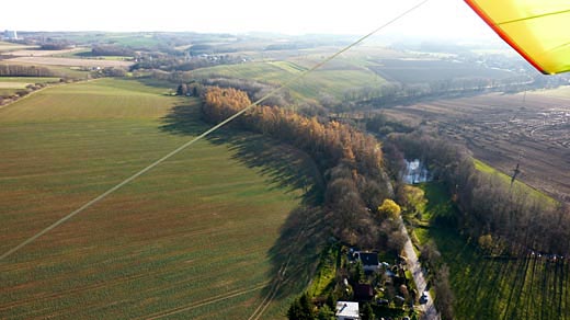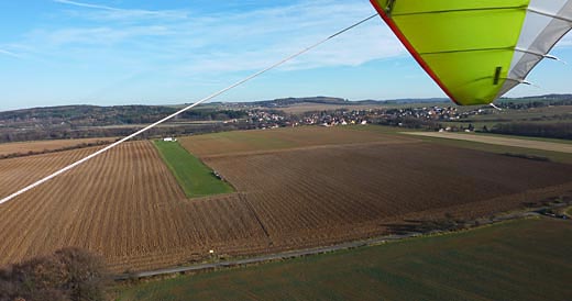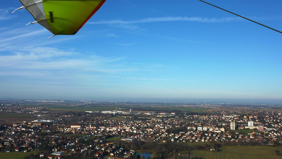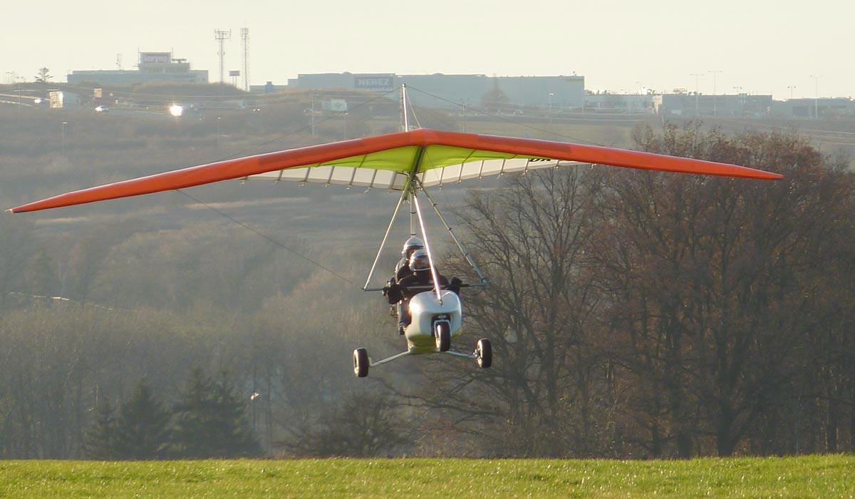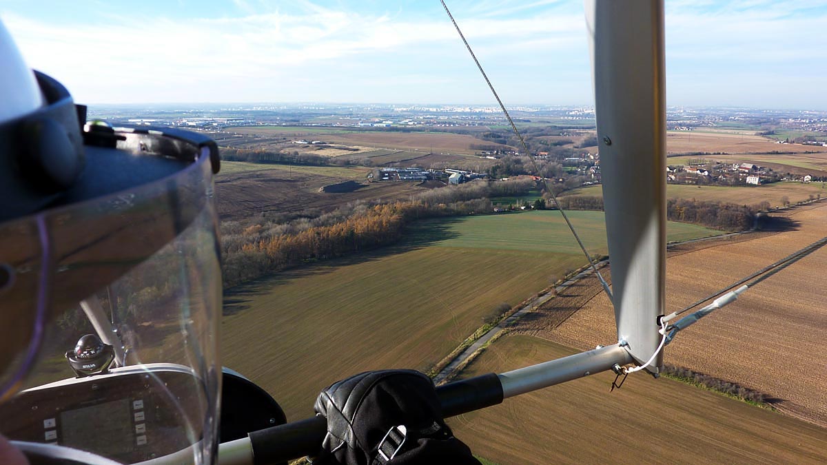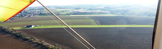 Turbulence nám mírně ztěžuje přibližování k rogalu z kterého nás fotí.