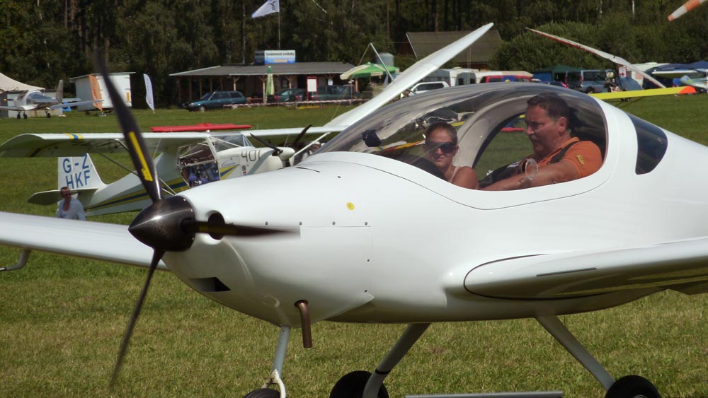 Při rychlé prohlídce připravených strojů hned nacházím jednu z dříve vyrobených CZ 15,4 s podvozkem Strem FM 301. Je to stroj sloužící k předváděcím letům a výcviku ve firmě Flying Machines v Jaroměři a pilotovat jej bude jeden z našich nejzkušenějších pilotů Ota Hynek, soutěžící v kategorii jednomístných ULLt.