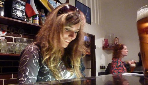 Diskutujeme nejen o létání a mně se jen částečně daří alespoň zachytit krásný výhled u baru.