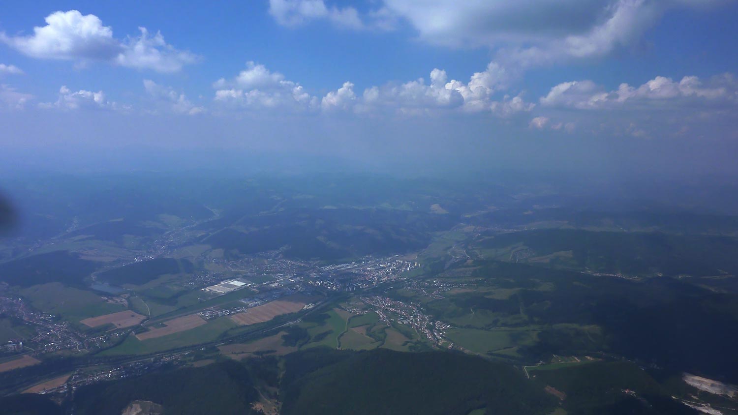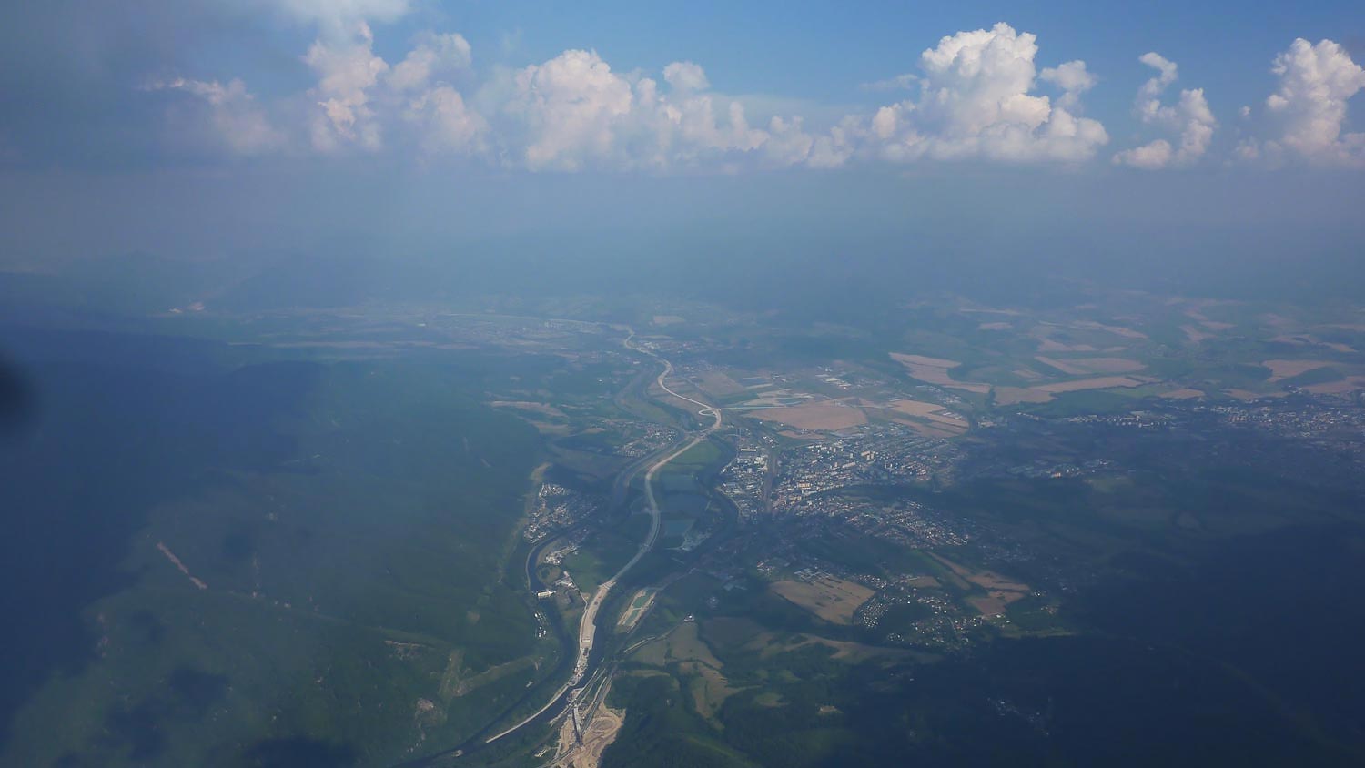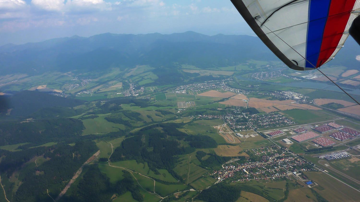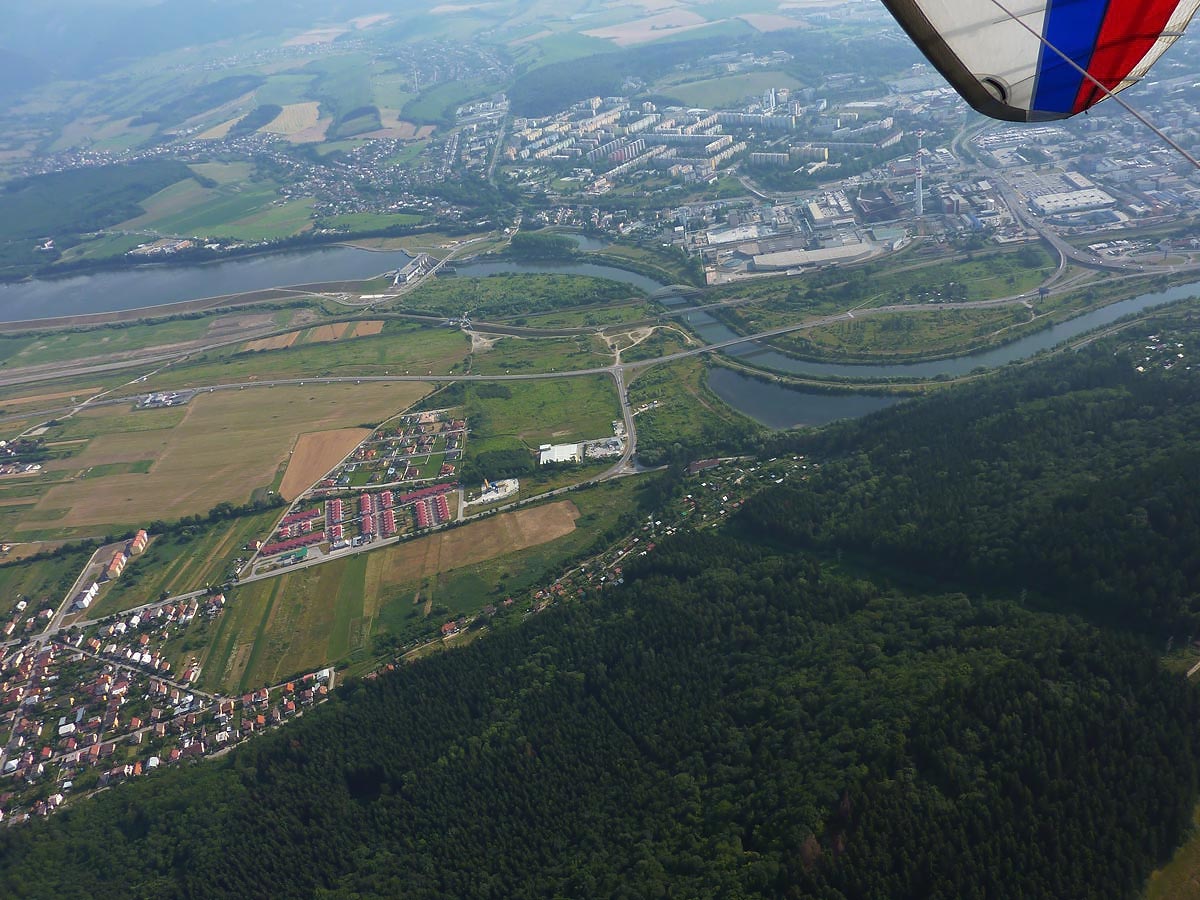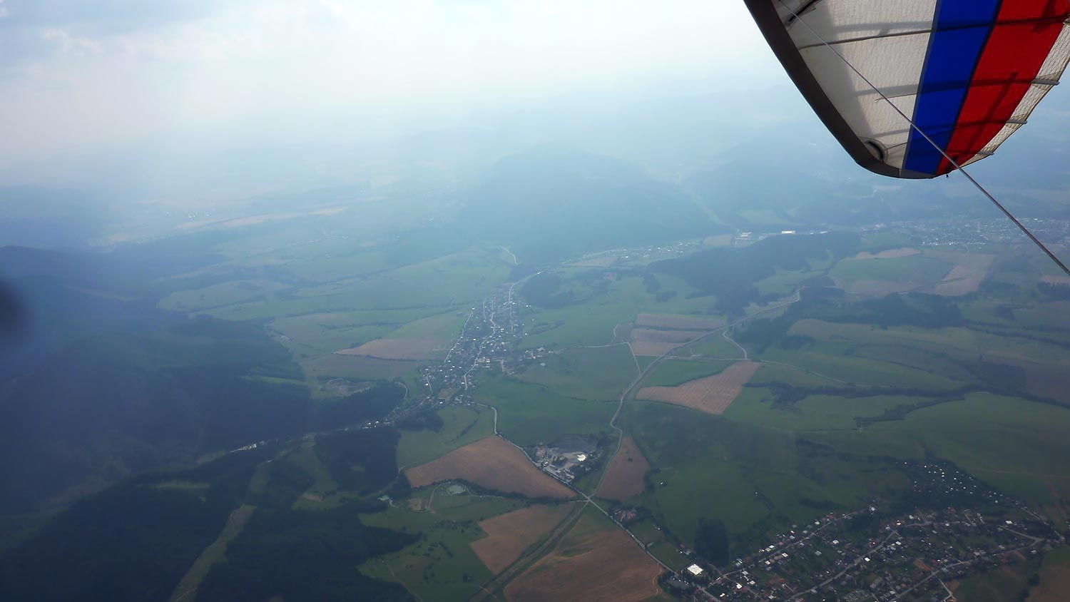 Z Martinek se vydávám jižně od Žiliny a stoupám i v rovinách. Létat se dá dnes všude, na stoupání narážím ať letím kamkoli a díky výkonu napnutého křídla neklesám pod 2000m.
