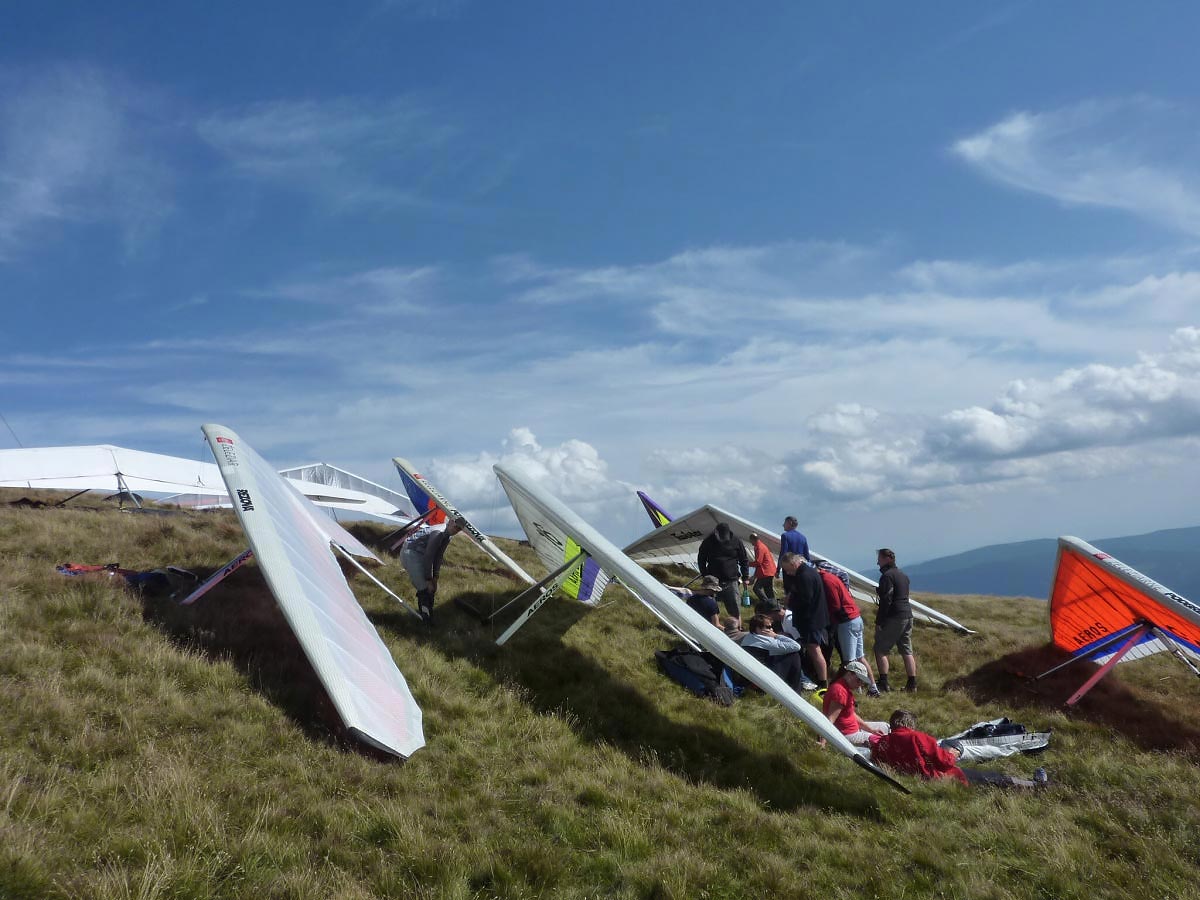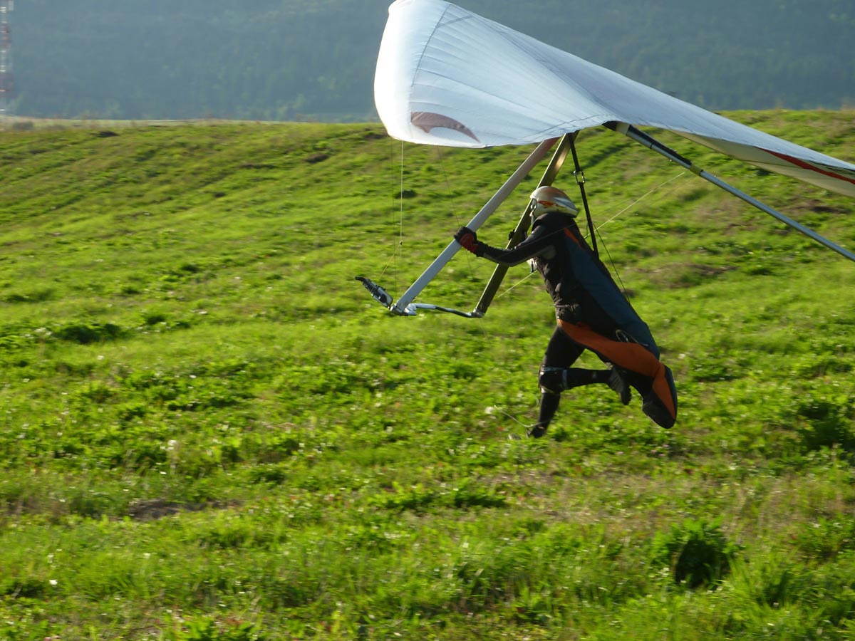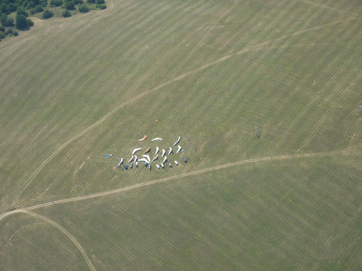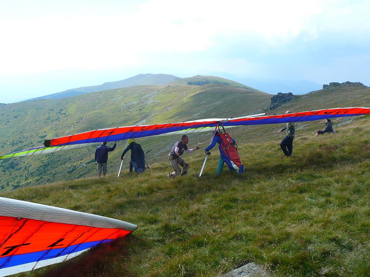 V pátek jsme kvůli předpovědi ještě silnějšího JZ větru jeli na pro mě známé startoviště jen z vyprávění „Podkonické pleše“. Ty mají pověst plýtkého, velmi plýtkého startoviště, kde se ukáže, jak umí pilot rogala běhat. Překvapivě na startu bylo až moc klidno, flérky líně tančily kolem tyček a ač nažhaveni, nikomu se do startu moc nechtělo. Jaro Sojka, Edo Dropko, Ivan Plučinský a já jsme se připravili na rozlehlém startovišti a vyčkávali. Naštěstí jeden z mlaďochů měl víc kuráže a skočil do toho před náma. Ne že by se po startu nějak zvedal, ale zdálo se, že tam něco má. To nám stačilo, abychom tam v připravené sestavě naskákali.