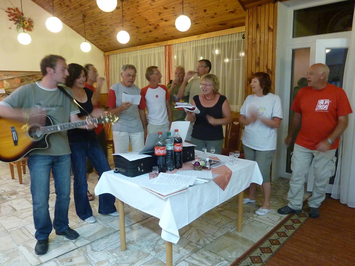 Předání cen a závěrečné rozloučení proběhlo v nepředstavitelné pohodě. Každý z účastníků věnoval nějakou hodnotnou věc nebo i maličkost pro radost, z kterých se poskládaly ceny pro vítěze a první desítku. Večer obohatila francouzská výprava o pěvecké vystoupení s tancem. Na velké plátno se promítaly fotky a videa s komentářem čerstvých zážitků ze závodu. Laďa Geci parádně hrál na kytaru a všichni jsme společně zpívali snad až do kuropění. V neděli šla fronta, bylo neletovo, tak do hajan nikdo nespěchal.