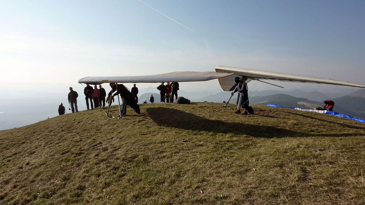 Martin a Robert na startu. Oba již stavěli křídla, když jsme dorazili na kopec.