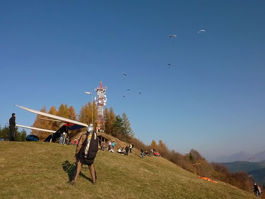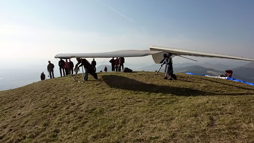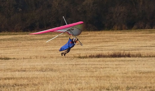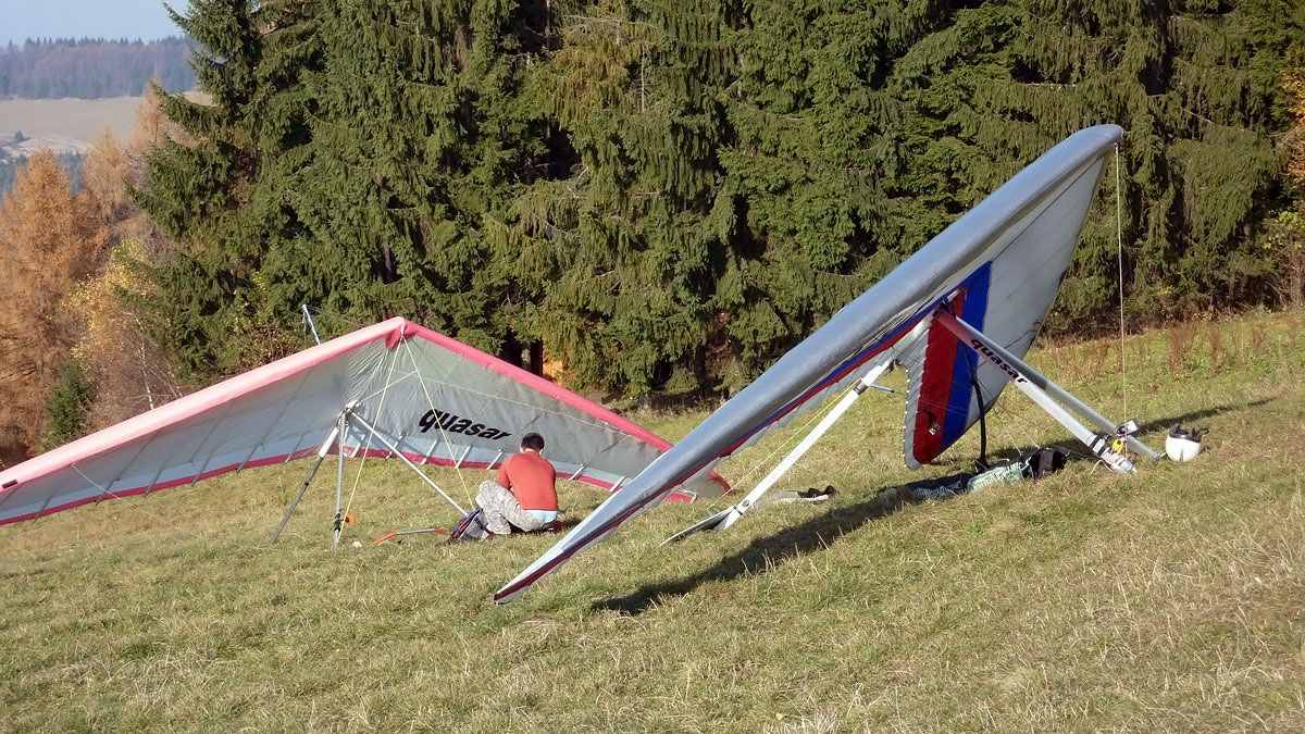 Dnes měli opravdu všichni příležitost strávit ve vzduchu libovolně dlouhou dobu. Podmínky byly příjemné a sem tam nás nadzvedla i mírná termika. Nebýt toho, že jsme s Radkem oba při přistání slušně řízli s křídlem o zem, bylo by to dnes asi dokonalé