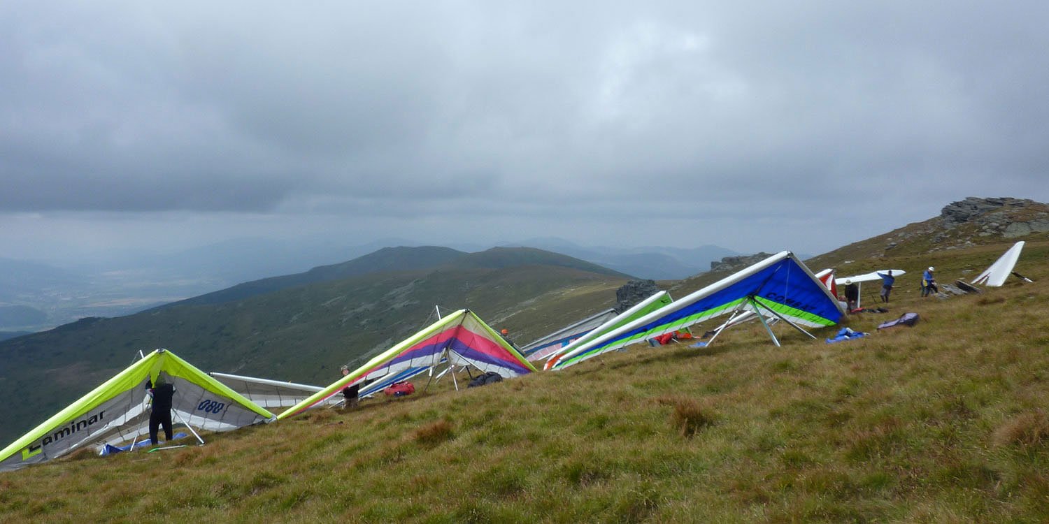 Ačkoli předpověď počasí nebyla vůbec přesvědčivá, tak jsme se v mezinárodní sestavě 18. rogalistů, 17. padáčkářů a sedmi posádek balonářů sešli 23. 8. v pátek, první den setkání v hotelu Biela medvedica. Organizátoři nás přívítali a po briefingu bylo dáno, že se volné sekce rozdělí - my rogalisti vyrážíme na Kráľovu hoľu, dominantu východních NT a PG vyrazili na Slopovo, startoviště na jižní straně Slovenského rudohorie.