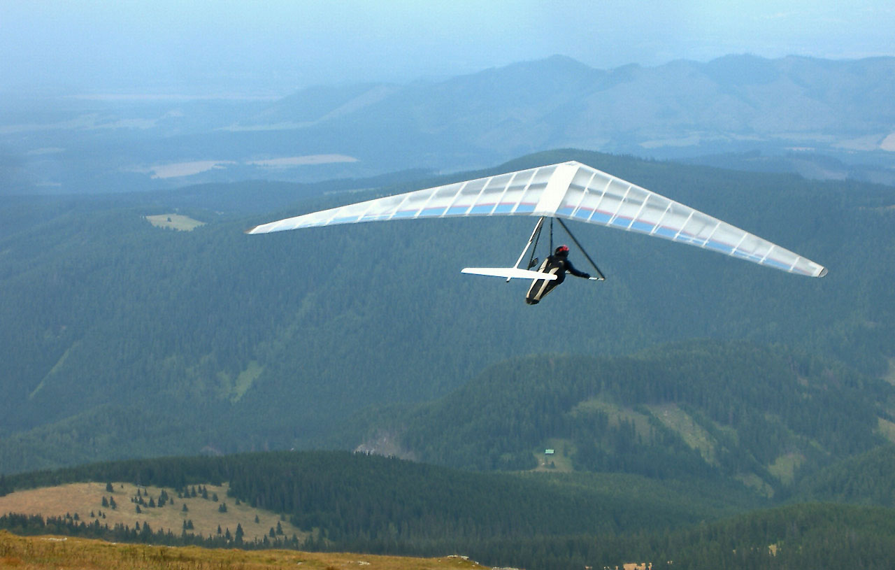To už se do vzduchu vrhli i další piloti, Jaroslav a Fero, který nás rychle doháněl. Zatímco Zoltan už přistával v polovine prvního ramene, startují další opozdilci Artur a Hofik. Nechápal jsem, co nás všechny drží ve vzduchu, odkud se bere terminka, když v okolí 40km nesvítí sluníčko. Dan převzal vedení a letěl středem údolí pronásledován Jarom, který se později odklonil a zkusil to po severním úpatí Rudohorie. S Robertem jsem vytvořil dvojici a společně se vrátili na hlavní hřeben Kráľovky, tak se o více než 45° odklonili od trasy, dost si zaletěli a ztratili kontakt s první skupinkou. Krátce po té nás jižněji předletěl později startující Fero. Zatímco s Robertem hledáme a zkoušíme dobrat výšku na hřebenu Dan, Jaro i Fero otáčejí jedničku. Z později startujících pilotů se k nám blížil Hofik i Artur, který na tom byl nejlépe. Zvolil trasu nad úpatím a pod temnou základnou nás na svém novém rogalu rychle dolétával. Na hřebenu se nám podařilo najít slabounké stoupání a s desítkou metru navíc se mi ho podařilo ustředit.