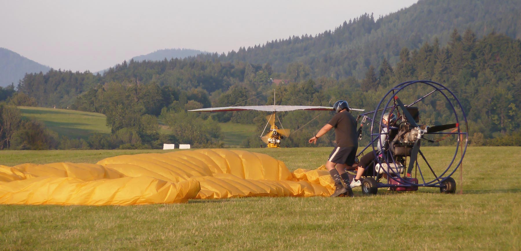 nebo ultralehký vrtulník. Sleduji ale hlavně Vláďu s našim motorovým rogalem.