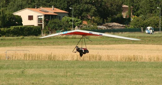 Na 1300 km dlouhou cestu jsme vyrazili už ve čtvrtek 18. června večer naším stařičkým Ford Tranzitem. Nebýt upadlého výfuku a kapající vody pod termostatem, bylo by to bez problémů. V pátek v poledne jsme celí utahaní zvažovali, zda nepotrénovat ze severního startu na Chabru, kde mezi lokálními bouřkami trénovalo asi 20 odvážlivců, ale nakonec jsme to vzdali s tím, že máme ještě dva tréninkové dny. O víkendu ale foukal Mistrál, severní vítr cloumal v kempu stany jako o život a tak jsme se alespoň v klidu zaregistrovali a podstoupili povinné měření podpěrek v místní tělocvičně pro koulení. Combat L 14 07 má mít uhly vnějších 7.35° a vnitřních 4.25. Povolená tolerance je navíc ještě 2°, tak jsme všichni z českého týmu nakonec podpěrky ještě snižovali s vyjimkou Honzy Krofty, který naopak doposud létal s podpěrkami příliš dole a musel je zde zvedat.