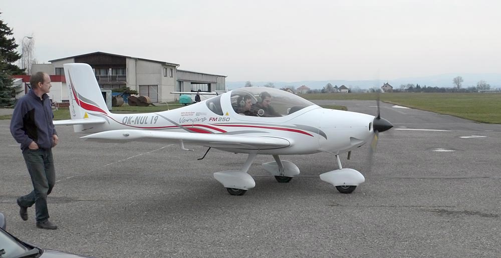 Poslední námi vyrobenou nosnou plochu CZ15,4 bude firma Flying Machines vystavovat se svým nejmodernějším podvozkem Stream 301 na letecké výstavě ve Friedrichshafenu. Abychom pomohli doladit poslední drobnosti na připravovaném exponátu, vyrazili jsme s Láďou v pátek 27. 3. 2009 na letiště do Jaroměře.