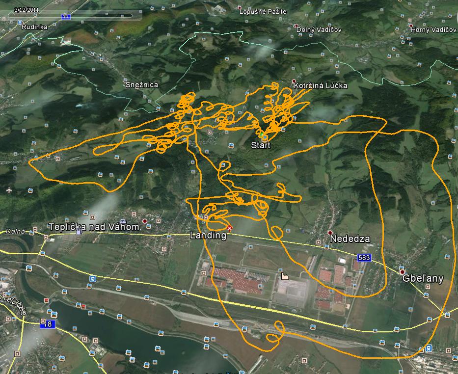 Zjišťuji ,že ani v rovině proti větru neztrácím moc výšky ,tak se poprvé kochám pohledy na malou a velkou Fatru. Před sebou vidím Martinky, ze kterých mám docela respekt při takovém silném větru od jihu, tak se raději vracím zpoza silnice zpátky ke kopci. I tak jsem se vrátil s výškou nějakých 400 m nad startem , tak si říkám , že bych to zkusil celé ještě jednou ?