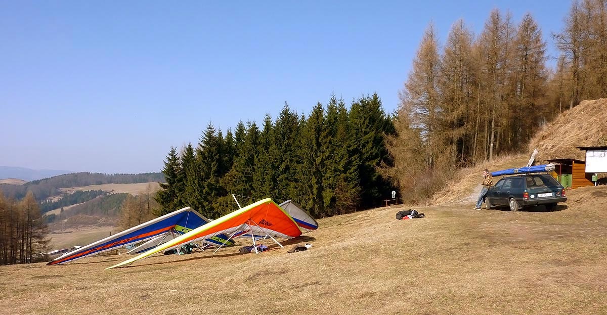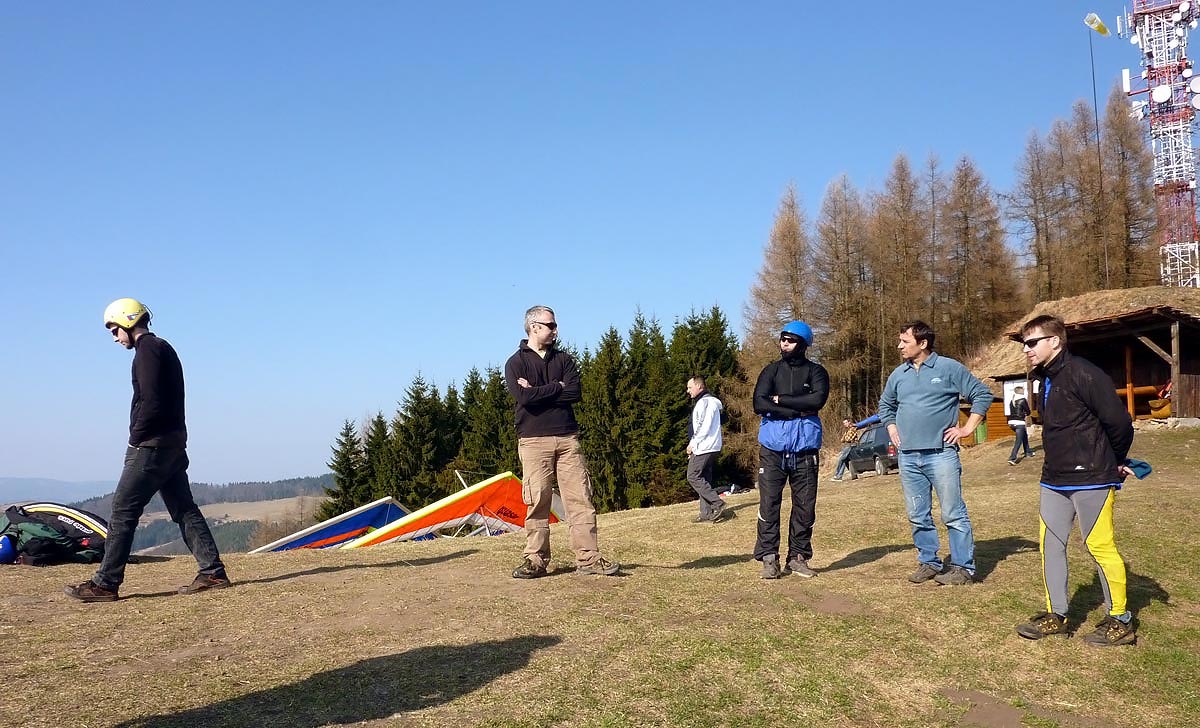 a tak všichni spíše než správný okamžik startu, řešíme vylepšení našich strojů, nebo vybavení. Rosťa poprvé poletí nový postroj, Míra má problém s autem, tak neletí a jen smutně pozoruje oblohu…