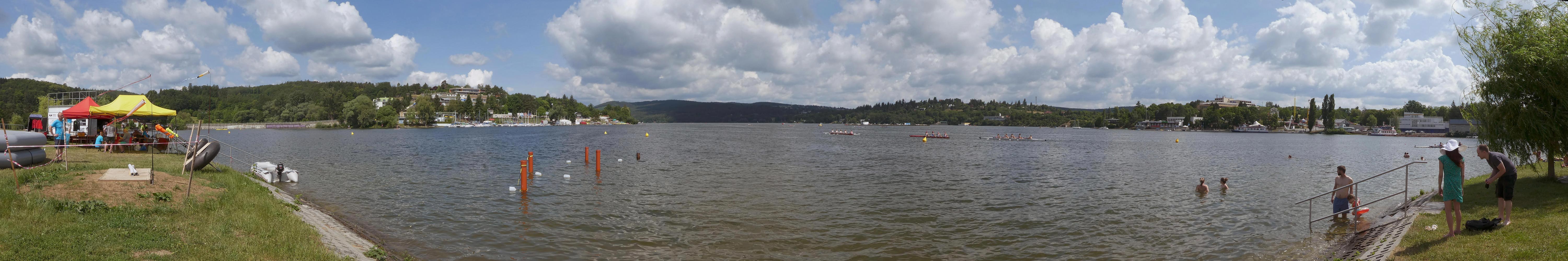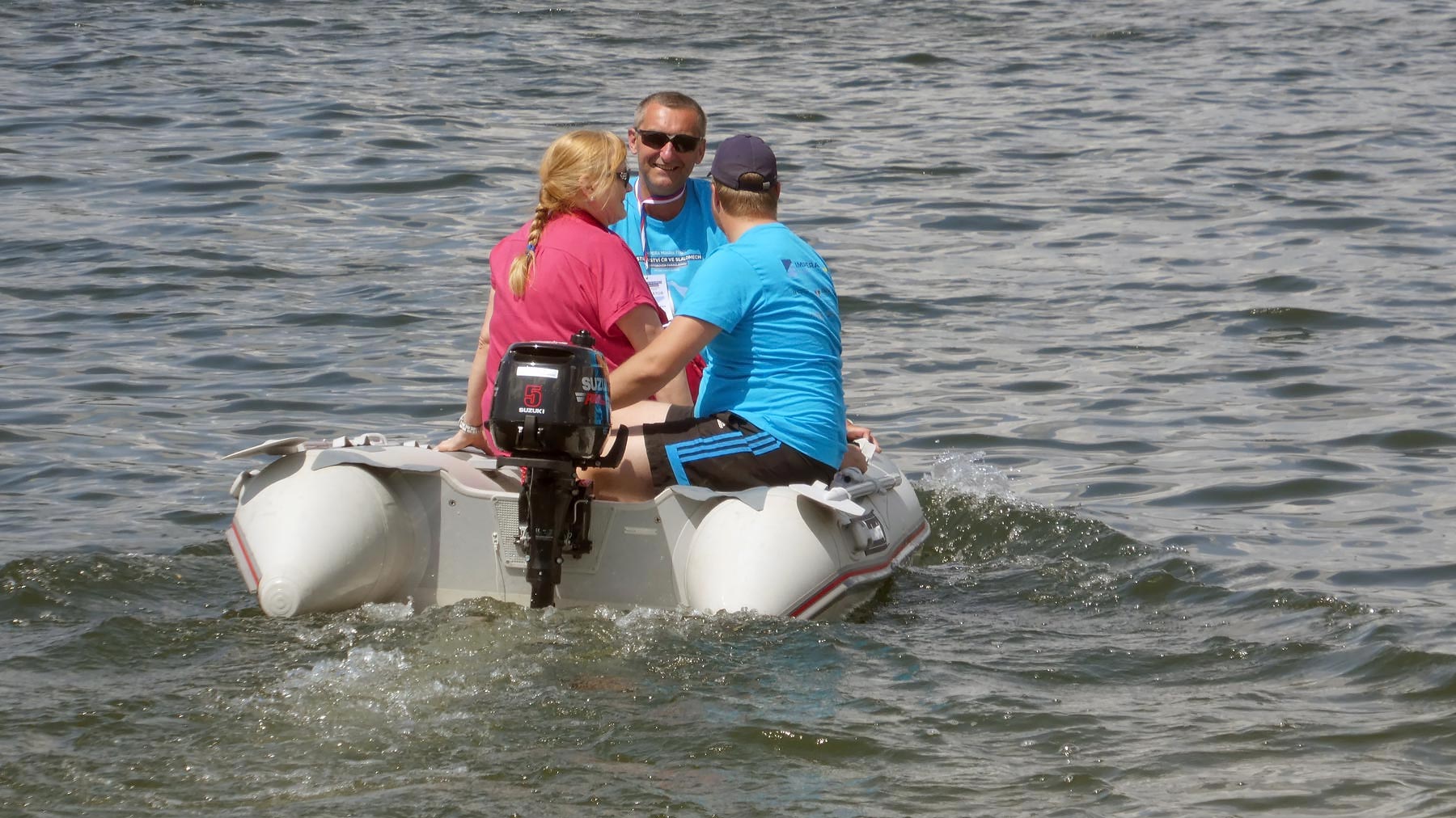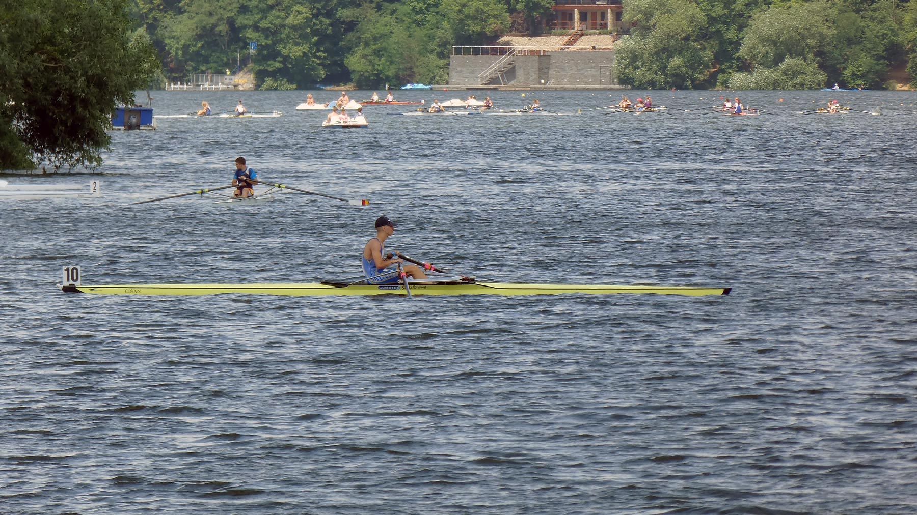 Fouká vítr a start závodu kolem pylonů nad vodou Brněnské přehrady se několikrát odkládá.