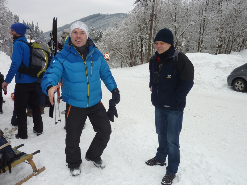 Krátce po 12-té hodině vyrazilo ze základního táboru ve Zlatníku 16 členů výpravy k vrcholu. Každý se na náročný výstup připravil podle svého. Někteří vybaveni běžkami jiní tažným psem, nebo taťkou (který se stal i tažným psem