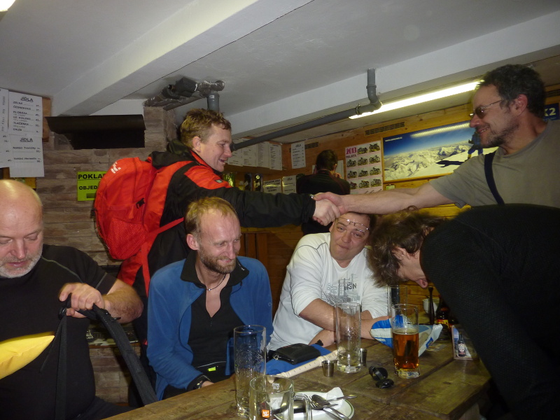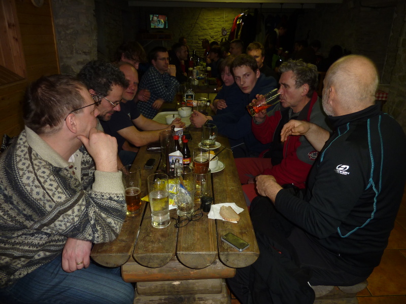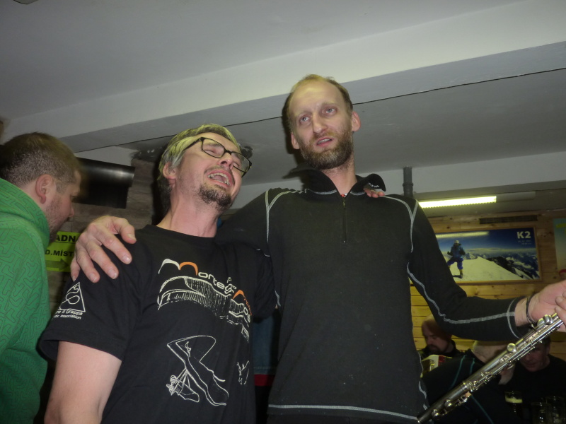 Na vrcholu naše řady ještě rozšířili další 4 členové a výprava byla kompletní. Debatu mimo leteckých témat rozvířila vášnivá diskuze nad právě probíhajícími volbami prezdenta. V závěru večera jsme si i zazpívali s místními a udělali slušným chováním snad dobré jméno všem rogalistům z kraje.