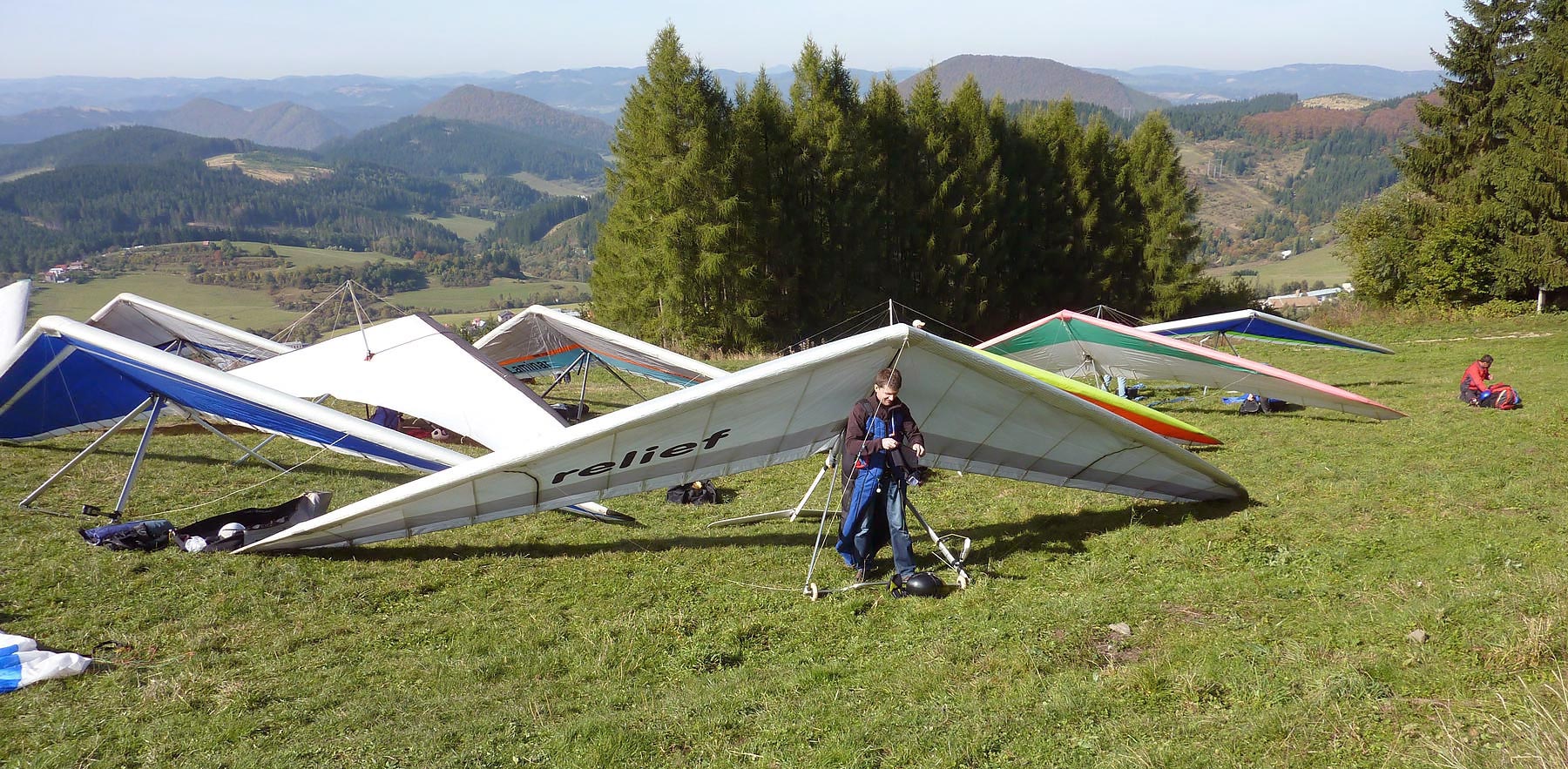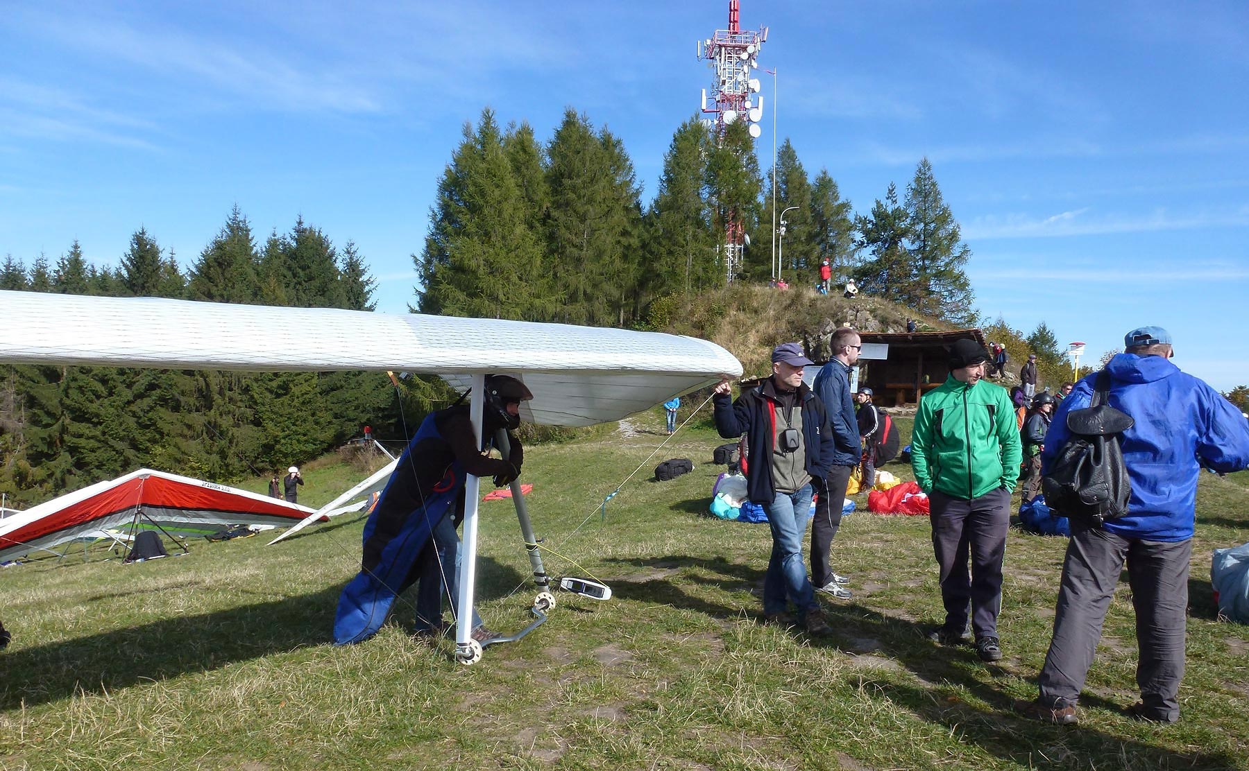 Již delší dobu jsme domluvení s Michalem, majitelem opraveného Reliefu, že při první příležitosti pojedeme na Straník, a já mu pomohu při přeškolení na výkonný kluzák. Sobota 5. 10. se jeví jako ideální termín, a tak po 10 hodině vyrážíme. Vím, že pokud bych vezl také své rogalo, bylo by pro mne těžké se této dnešní prioritě plně věnovat, a tak můj Reliefek bohužel zůstává doma. Na Straník přijíždíme mezi prvními a společně stavíme Michalovo křídlo. V zápětí doráží Jura s Rudou a pak už rogalisté přicházejí na start jeden za druhým..