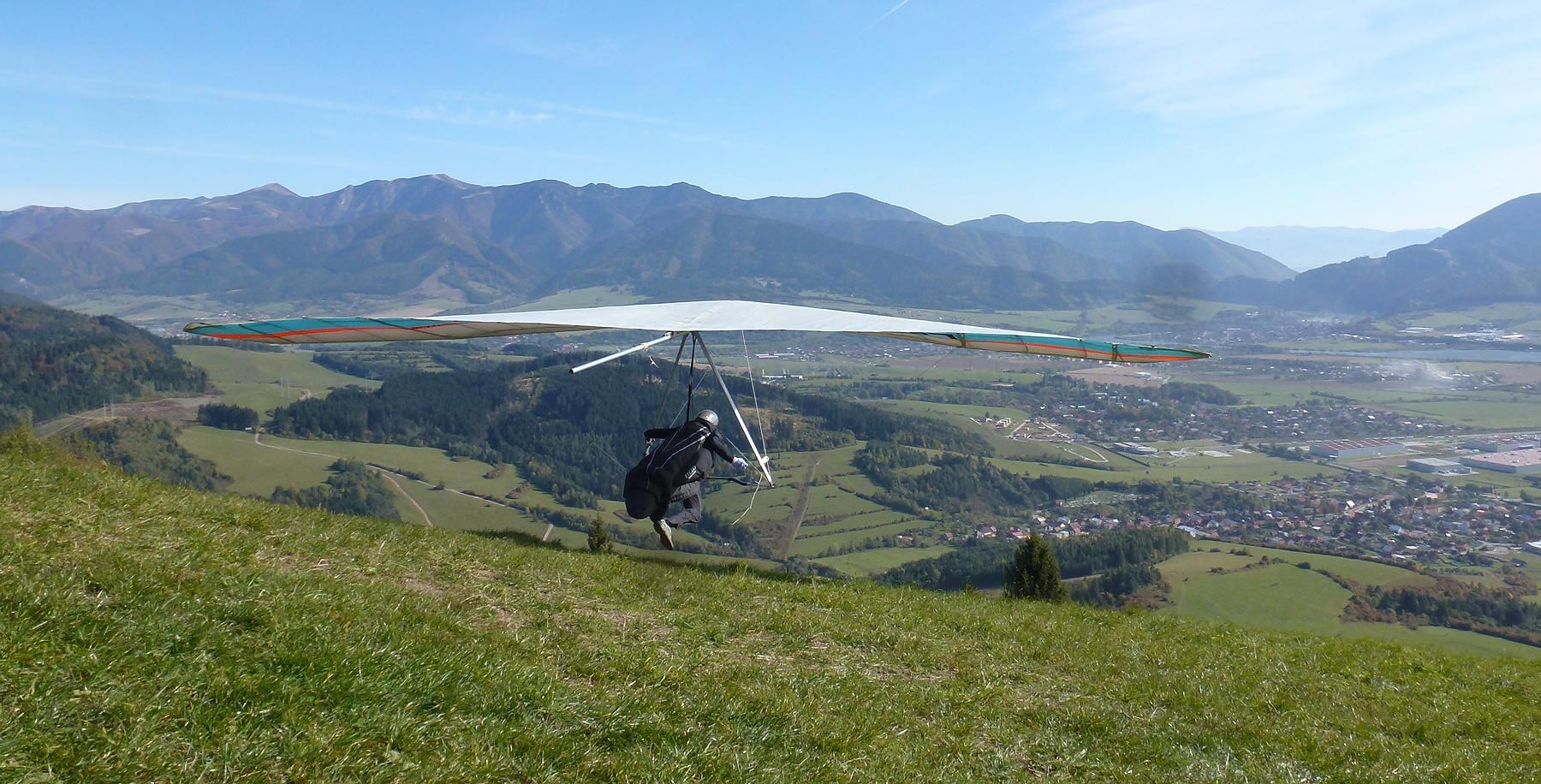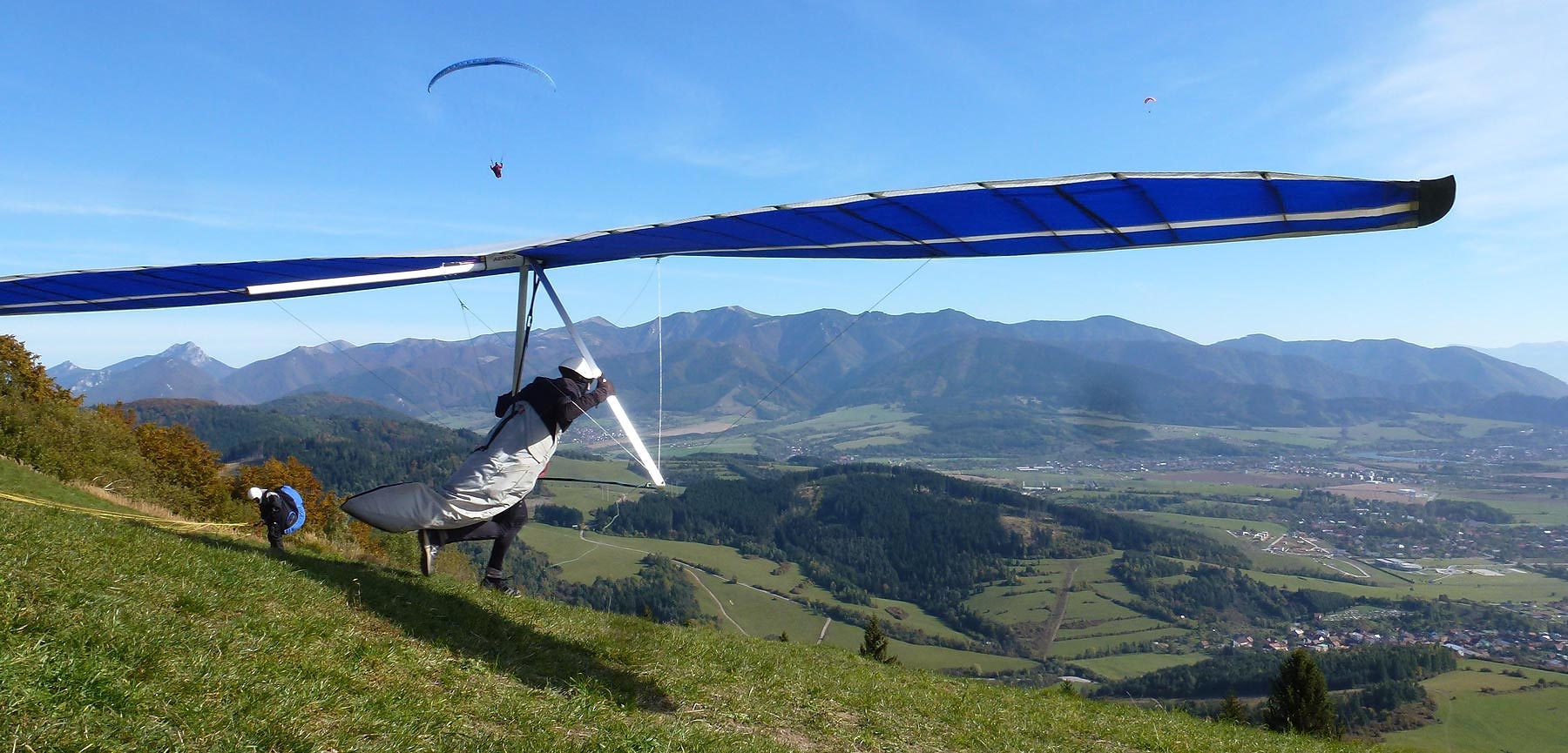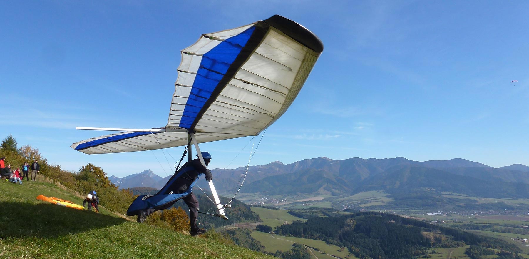 Pavel se svým Quasárkem po startu, na pozadí Malé Fatry