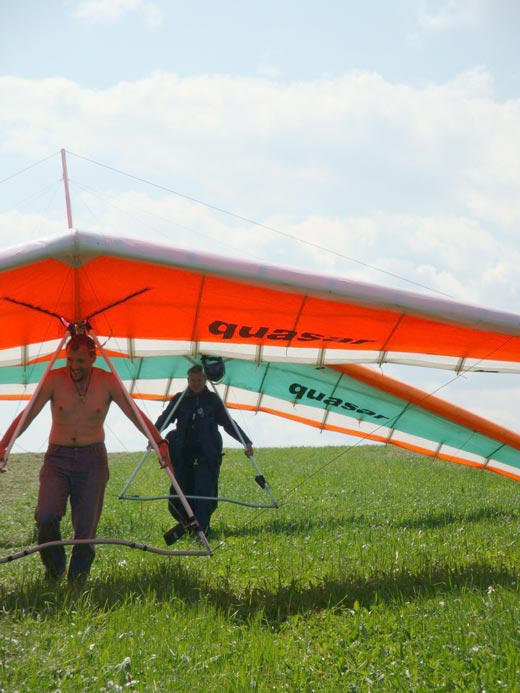 První den vzhledem k přechodu fronty volím terén Geisberg u Salzburgu (převýšení 700m), který se vypíná přímo nad městem, na okraji Alp. K žádnému velkému lítání to není a tak dáváme pouze krátké lety. Pro Filipa a Standu kteří poprvé opustili rodnou Ranou je to i tak zážitek sám o sobě.
