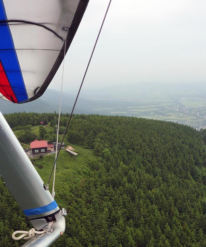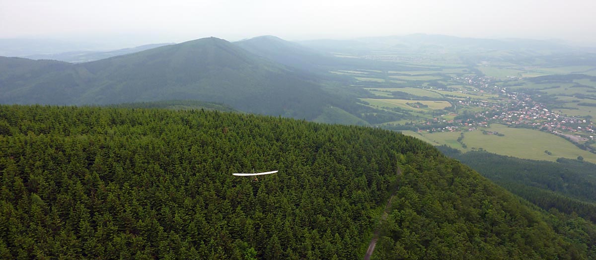 Dnešní předpověď vychází konečně příznivě pro létání na Javorníku a tak vyjíždíme s Davidem na start. Letos jsme tu s křídly poprvé, a tak pečlivě kontrolujeme, jestli smrčky před startovištěm nevyrostly příliš.