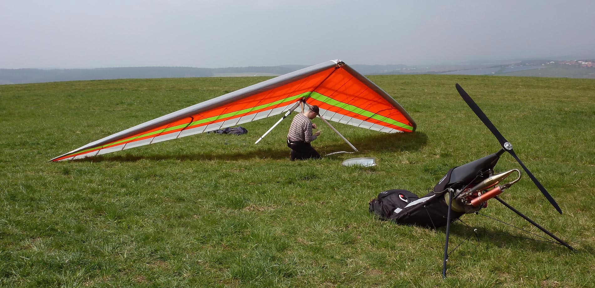 Sešli jsme se blízko Slušovic na místě vhodném pro létání s motorovým postrojem, které znám jako “Louka u Rakové”.