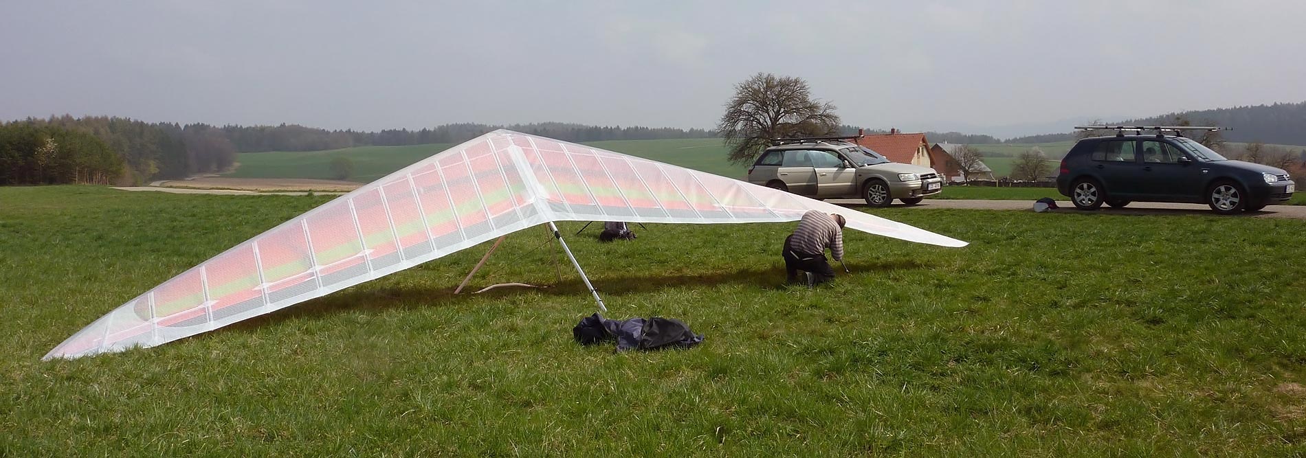 Nový Quasar měl být co nejdříve zalétán. Vzhledem k počasí jsme s majitelem dospěli k názoru, že bude asi nejefektivnější ho zalétat jako motorizované rogalo.