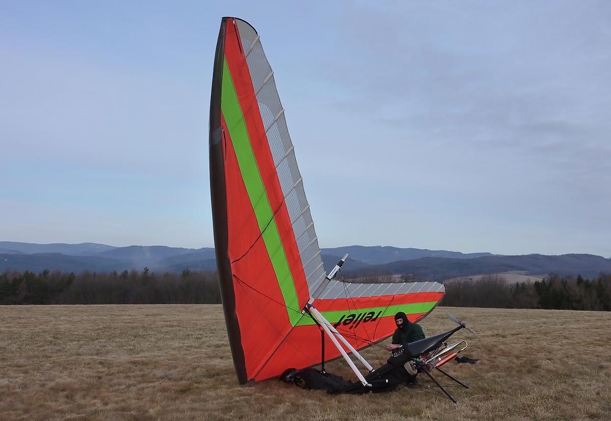 Ještě jednou kontrolujeme vše na křídle i postroji a když se vítr rovná správným směrem, Michal se chystá ke startu.