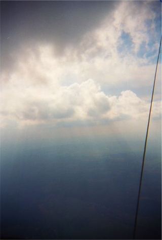 S němým úžasem jsem pozoroval lanka tlustá tak na prst, speedbar a trapézy podivných profilů a bílou vrstvu na bundě a rukavicích. Uvědomil jsem si zimu, která mi zalézala do buleťáku. Začal jsem přemýšlet o tom, jestli se na pružném potahu rogala také může vytvořit námraza, změnit profil a ještě mě trochu pobavit, když mi teď už tak krásně šlo to držení mírných zatáček. Další radost mi udělal pohled na výškoměr. Pak se bílo najednou rozsvítilo a já jsem vypadl z boku mraku asi v jeho polovině, ve výšce 4000 m.n.m., do zářícího slunce a modrého nebe nade mnou.