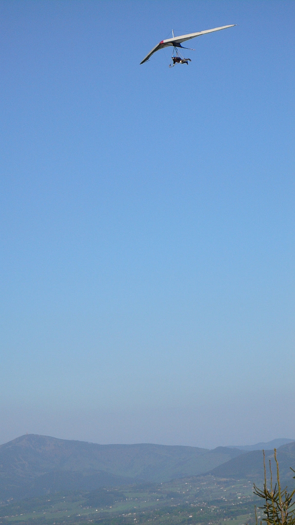 Kolem 19hod jsme už stáli sami na startovišti Velkého Javorníku a Karel se chystal na start. Po přechodu studené fronty byla skvělá dohlednost, ale vzduch měl do příjemného podvečerního klidu hodně daleko. Nakonec se našel krátky interval, zalétavací pilot úspěšně odstartoval a já mohl schovat pilku a sekerku, které jsem si připravoval na případné vyprošťování se smrčků pod startovištěm:-). Zálet proběhl úspěšně a Karel jej charakterizoval slovy, že je to takový normální magic. Fotky z této akce bohužel žádné nejsou žádné, protože foťáky zůstaly hezky doma:-)