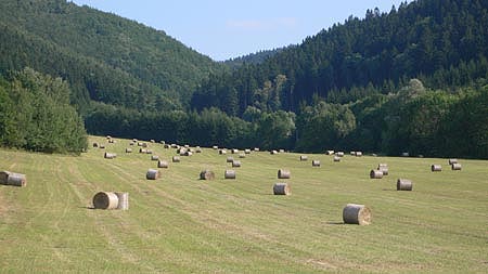 První se do postroje nasoukal Radek a tak se staví na start. Po jeho odstartování jsem na řadě já. Ještě upravujeme délku závěsu a stojím na startovací čáře. Přede mnou se melou smrčky v turbulenci, tak čekám na klidnější interval. Čekání se trochu protahuje, neboť mám menší problém ustálit magica do rovné polohy, stále se mi někam naklání. Po nekonečné době přichází delší klidný interval a tak na nic nečekám a rozbíhám se. Pak už jen vnímám smrčky pod sebou a konečně letím. Snažím se dostoupat Radka, nicméně ten se mi někam ztrácí a po delší době jej vidím na přistávačce. Škoda, těšil jsem se na skupinové létání. Testuji nové křídlo i nový terén. Karel mi půjčil vário, tak zkouším točit nějaké stoupáčky a občas se něco podaří. Hlavně si vychutnávám pobyt ve vzduchu, krásné pohledy na panoramata Beskyd i záplavu zeleně všude kolem. Po hodině usuzuji, že by toho mohlo být napoprvé dost a vydávám se na přistávačku. Nechápu proč jí musí být ta nejmenší louka co tady vůbec je a navíc ještě obklopená stromy. Ale zem se již neúprosně blíží a tak nalétávám na přistávací okruh a řítím se k zemi. Pak již následuje odtlačení, které jsem si v poslední chvíli rozmyslel a tak zakončuji let mírným klofancem do země, ale naštestí opravdu jen mírným, že jej i přístroje přežily :-).
