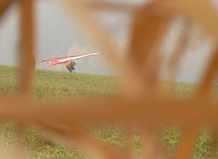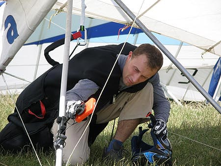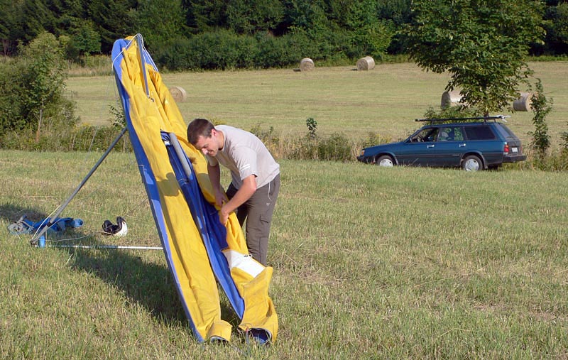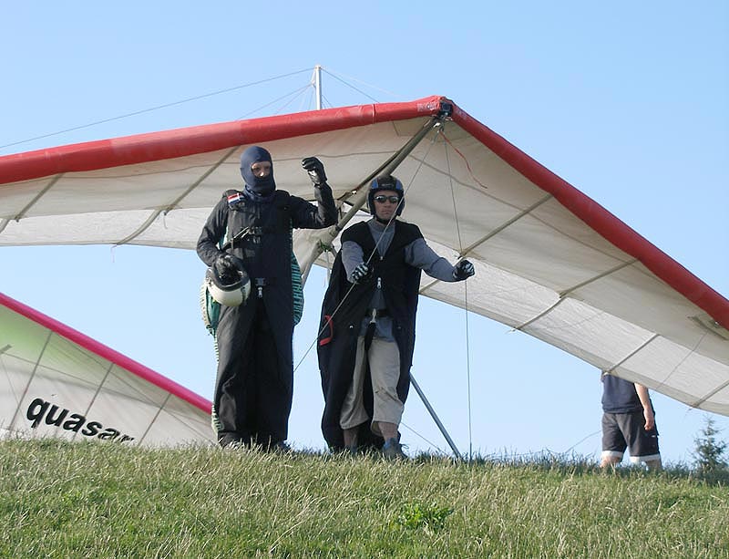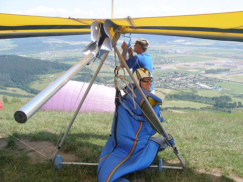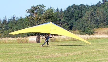 Dnes fouká trochu silněji a tak nad startem létají pouze Berťa s Jirkou na Reliefech. Stavíme cvičné UP-éčko a ještě asi 1/2 hodiny čekáme na klidnější podmínky.