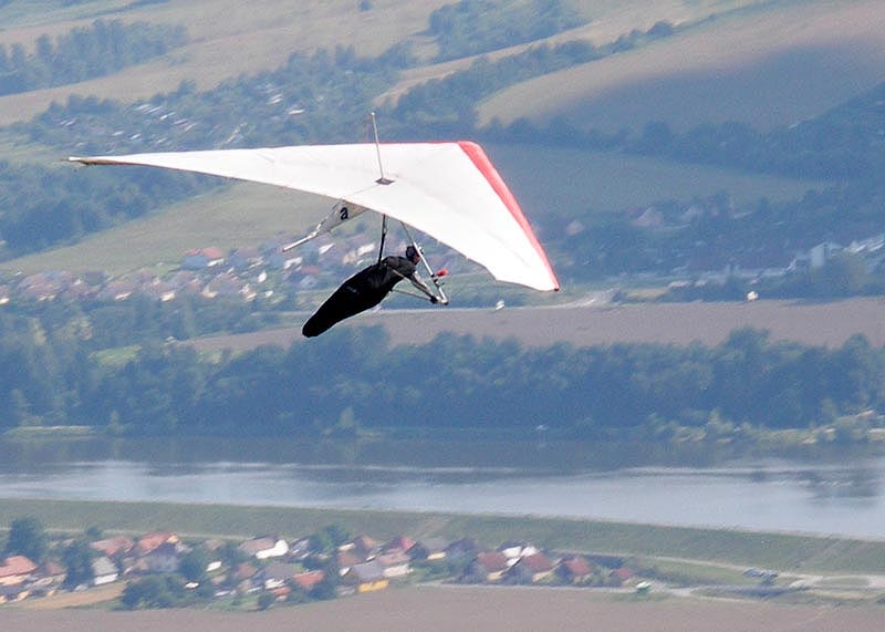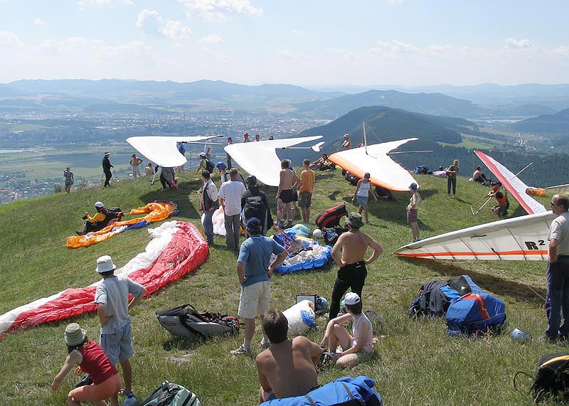 Startoviště Straník - padáky a rogala. Vzájemně se respektujeme a ukazujeme si stoupáky. Dokonalá symbioza.