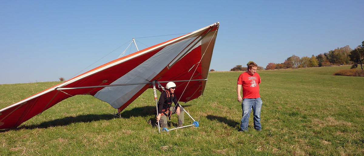 Tak je to tady. Nastal den D, první let na rogalu z velkého kopce!Předpověď bohužel d ...