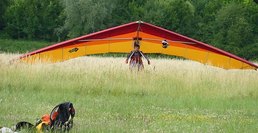 Stavíme křídla, padáčkáři nám ukazují, že dnešní den není žádnouvyjímkou a termika opět funguje