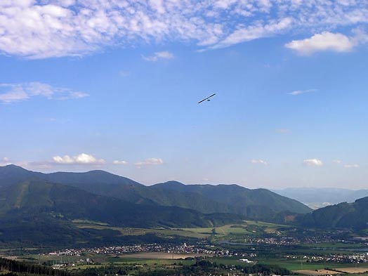 Ve vzduchu… a v pozadí ještě zasněžené vrcholky Malé Fatry.